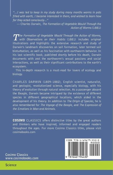 "...I was led to keep in my study during many months worms in pots filled with earth, I became interested in them, and wished to learn how far they acted consciously..." - Charles Darwin, The Formation of Vegetable Mould Through the Action of Worms (1881) The Formation of Vegetable Mould Through the Action of Worms, with Observations on their Habits (1881) includes original illustrations and highlights the extensive research and study of Darwin's landmark discoveries on soil formation, later termed soil bioturbation, as well as his fascination with earthworm behavior. In his last scientific book, published shortly before his death, Darwin documents with zest the earthworm's sexual passions and social interactions, as well as their significant contributions to the earth's ecosystem. This in-depth research is a must-read for lovers of ecology and biology.