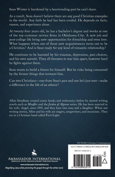Sean Winter is burdened by a heartrending past he can't share. As a result, Sean doesn't believe there are any good Christian examples in the world. Any faith he had has been eroded. He depends on facts, reason, and experience alone. At twenty-four-years-old, he has a bachelor's degree and works at one of the top customer service firms in Oklahoma City. A new job and post-college life bring new opportunities for friendship and even love. What happens when one of those new acquaintances turns out to be a Christian? And is Sean ready for any kind of romantic relationship? He continues to be haunted by his traumas, depression, past choices, and his own naiveté. They all threaten to tear him apart, however hard he fights against them. Sean wants to build a future for himself. But he risks being consumed by the former things that torment him. Can two Christians, one from Sean's past and one he's just met, make a difference in the life of an atheist?