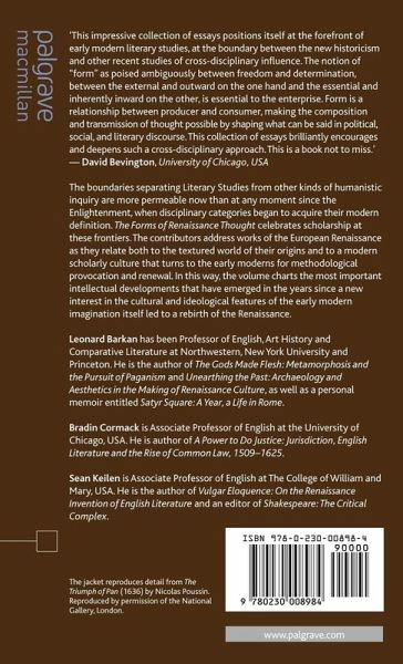 'This impressive collection of essays positions itself at the forefront of early modern literary studies, at the boundary between the new historicism and other recent studies of cross-disciplinary influence. The notion of 'form' as poised ambiguously between freedom and determination, between the external and outward on the one hand and the essential and inherently inward on the other, is essential to the enterprise. Form is a relationship between producer and consumer, making the composition and transmission of thought possible by shaping what can be said in political, social, and literary discourse. This collection of essays brilliantly encourages and deepens such a cross-disciplinary approach. This is a book not to miss.' - David Bevington, University of Chicago