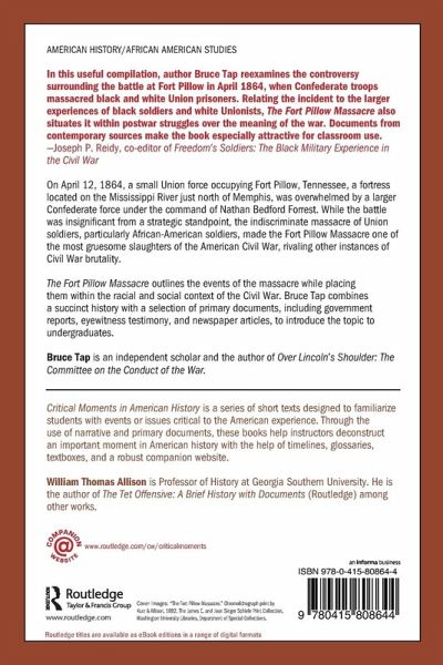On April 12, 1864, a small Union force occupying Fort Pillow, Tennessee was overwhelmed by a larger Confederate force. While the battle was insignificant from a strategic standpoint, the indiscriminate massacre of Union soldiers, particularly African-American soldiers, made the Fort Pillow Massacre one of the most gruesome slaughters of the American Civil War. The Fort Pillow Massacre outlines the events of the massacre while placing them within the racial and social context of the Civil War. Bruce Tap combines a succinct history with a selection of primary documents, including government reports, eyewitness testimony, and newspaper articles, to introduce the topic to undergraduates.