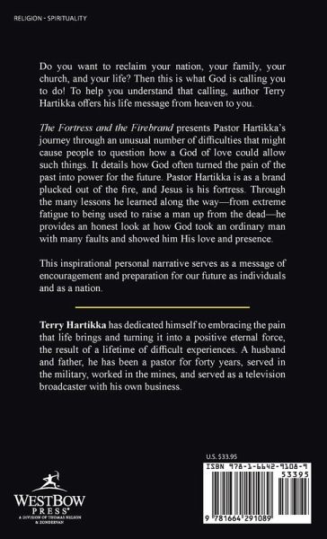 Do you want to reclaim your nation, your family, your church, and your life? Then this is what God is calling you to do! To help you understand that calling, author Terry Hartikka offers his life message from heaven to you. The Fortress and the Firebrand presents Pastor Hartikka's journey through an unusual number of difficulties that might cause people to question how a God of love could allow such things. It details how God often turned the pain of the past into power for the future. Pastor Hartikka is as a brand plucked out of the fire, and Jesus is his fortress. Through the many lessons he learned along the way-from extreme fatigue to being used to raise a man up from the dead-he provides an honest look at how God took an ordinary man with many faults and showed him His love and presence. This inspirational personal narrative serves as a message of encouragement and preparation for our future as individuals and as a nation.