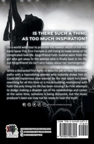 Is there such a thing as too much inspiration? On a world wide tour to promote the newest album of hot rock band Spear Fist, Finn Fairlane is still trying to make sense of his complicated love life. Ex-girlfriend Faith Siubhal went from the girl who got away to the woman who is finally back in his life, but his girlfriend Viv isn't very happy about her reemergence. While a distracted Finn fights to keep his job on tour, he crosses paths with a hypnotizing woman who instantly draws him in. Could the mysterious new woman be the real spark he's been searching for all this time or is his re-budding relationship with Faith the only thing his life has been missing? As Finn attempts to dodge making a disaster out of his relationships and career at the same time, someone is being dishonest, but the music producer's keen ear may not be ready to hear the truth.