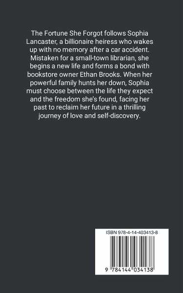 The Fortune She Forgot tells the gripping story of Sophia Lancaster, a billionaire heiress who wakes up with no memory after a devastating car accident. Stripped of her past, she's mistaken for a small-town librarian and begins a new life in the quiet town of Willowbrook, where she meets Ethan Brooks, a bookstore owner with his secrets. Sophia forms a deep bond with Ethan as she navigates her new life, but the shadows of her forgotten past lurk just beneath the surface. When a mysterious phone call reveals the truth of her identity, Sophia learns that her powerful family is searching for her, determined to bring her back to the life she's tried to escape. Torn between the life she's built with Ethan and the one her family expects her to return to, Sophia must confront the dark truths of her past and the price of reclaiming her freedom. In this thrilling tale of self-discovery, love, and redemption, Sophia must choose between her family's expectations and desires. With danger closing in, Sophia will have to summon the courage to face the people who have controlled her life and fight for the future she deserves-one where she is finally free to be herself. The Fortune She Forgot is a suspenseful, heart-pounding journey into the complexities of identity, love, and the unbreakable power of choosing one's destiny.
