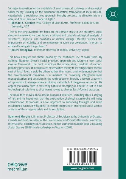 This book analyses the threat posed by the continued use of fossil fuels. By utilizing Elizabeth Shove's social practices approach and Murphy's own social closure framework, the book examines the accelerating treadmill of carbon-polluting practices. It incorporates externalities theory to investigate how the full cost of fossil fuels is paid by others rather than users, and to demonstrate that the environmental commons is a medium for conveying intergenerational monopolisation and exclusion in the Anthropocene. Murphy uncovers a pattern of opposition to change when exploiting valuable but dangerous resources. He argues that a new faith in mastering nature is emerging as a belief in just-in-time technological solutions to circumvent having to change fossil-fuelled practices.