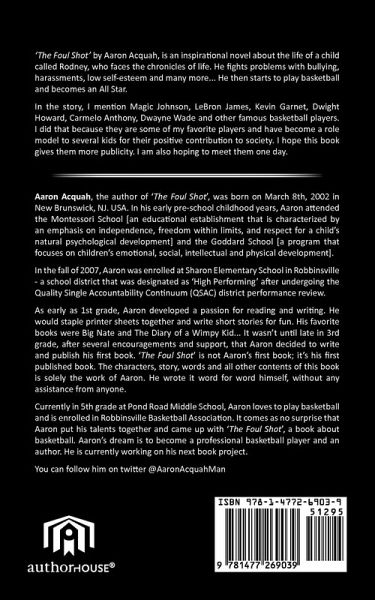 'The Foul Shot' by Aaron Acquah, is an inspirational novel about the life of a child called Rodney, who faces the chronicles of life. He fights problems with bullying, harassments, low self-esteem and many more... He then starts to play basketball and becomes an All Star. In the story, I mention Magic Johnson, LeBron James, Kevin Garnet, Dwight Howard, Carmelo Anthony, Dwayne Wade and other famous basketball players. I did that because they are some of my favorite players and have become a role model to several kids for their positive contribution to society. I hope this book gives them more publicity. I am also hoping to meet them one day.