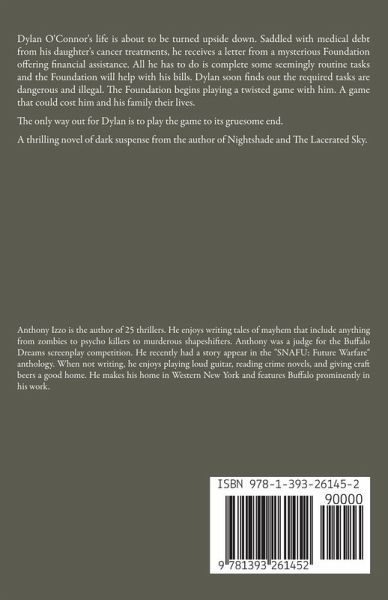 Dylan O'Connor's life is about to be turned upside down. Saddled with medical debt from his daughter's cancer treatments, he receives a letter from a mysterious Foundation offering financial assistance. All he has to do is complete some seemingly routine tasks and the Foundation will help with his bills. Dylan soon finds out the required tasks are dangerous and illegal. The Foundation begins playing a twisted game with him. A game that could cost him and his family their lives. The only way out for Dylan is to play the game to its gruesome end. A thrilling novel of dark suspense from the author of Nightshade and The Lacerated Sky.