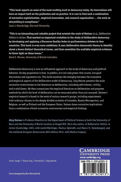 Deliberative democracy is now an influential approach to the study of democracy and political behaviour. Its key proposition is that, in politics, it is not only power that counts, but good discussions and arguments too. This book examines the interplay between the normative and empirical aspects of the deliberative model of democracy. Jürg Steiner presents the main normative controversies in the literature on deliberation, including self-interest, civility and truthfulness. He then summarizes the empirical literature on deliberation and proposes methods by which the level of deliberation can be measured rather than just assumed. Steiner's empirical research is based in the work of various research groups, including experiments with ordinary citizens in the deeply divided societies of Colombia, Bosnia-Herzegovina and Belgium, as well as Finland and the European Union. Steiner draws normative implications from a combination of both normative controversies and empirical findings.