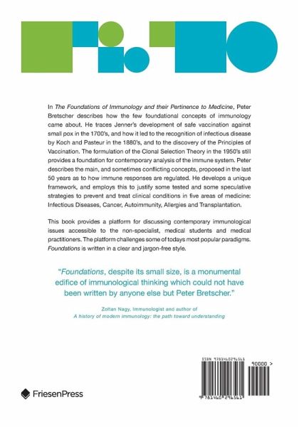 In The Foundations of Immunology and their Pertinence to Medicine, Peter Bretscher describes how the few foundational concepts of immunology came about. He traces Jenner's development of safe vaccination against small pox in the 1700's, and how it led to the recognition of infectious disease by Koch and Pasteur in the 1880's, and to the discovery of the Principles of Vaccination. The formulation of the Clonal Selection Theory in the 1950's still provides a foundation for contemporary analysis of the immune system. Peter describes the main, and sometimes conflicting concepts, proposed in the last 50 years as to how immune responses are regulated. He develops a unique framework, and employs this to justify some tested and some speculative strategies to prevent and treat clinical conditions in five areas of medicine: Infectious Diseases, Cancer, Autoimmunity, Allergies and Transplantation. This book provides a platform for discussing contemporary immunological issues accessible to the non-specialist, medical students and medical practitioners. The platform challenges some of todays most popular paradigms. Foundations is written in a clear and jargon-free style.
