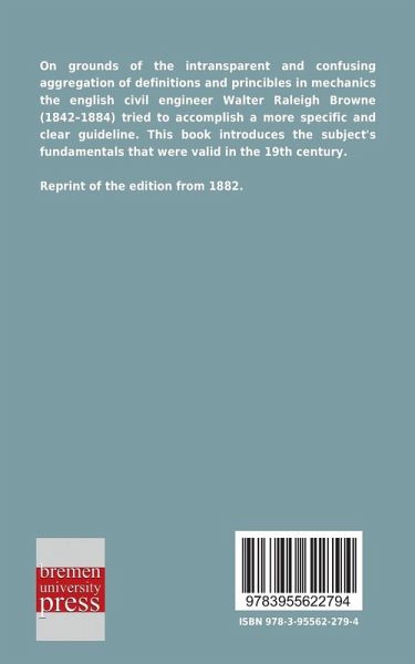 On grounds of the intransparent and confusing aggregation of definitions and princibles in mechanics the english civil engineer Walter Raleigh Browne (1842¿1884) tried to accomplish a more specific and clear guideline. This book introduces the subject\'s fundamentals that were valid in the 19th century. Reprint of the edition from 1882.