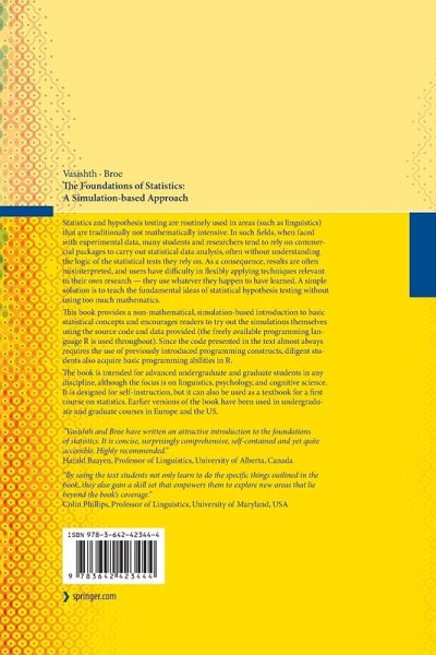 From the reviews: "Vasishth and Broe have written an attractive introduction to the foundations of statistics. It is concise, surprisingly comprehensive, self-contained and yet quite accessible. Students will find the simulation-based approach using R very helpful for acquiring an intuitive appreciation of the central concepts and ideas of statistical analysis. Highly recommended." Harald Baayen, Professor of Linguistics, University of Alberta, Canada   "My students very much appreciated the simulation-based approach of the text, the fact that it was based upon a powerful, cross-platform analysis package (i.e., R), and the fact that it dealt with issues that are very relevant to the analytical problems that they encounter in their own research. By using the text students not only learn to do the specific things outlined in the book, they also gain a skill set that empowers them to explore new areas that lie beyond the book's coverage." Colin Phillips, Professor of Linguistics, University of Maryland, USA "The Foundations of Statistics provides a step-by-step guide to introductory statistics. ... this is an introductory text for non-mathematicians, specifically those in the field of linguistics. ... The topics presented make it also relevant for students in other fields of the social sciences. The book provides a very non-theoretical and non-technical introduction to topics in statistics ... . the book serves its intended purpose very well. I would happily use it in undergraduate courses for social science students." (Ita Cirovic Donev, The Mathematical Association of America, September, 2011)…mehr