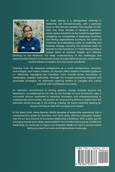 Dr. Paolo Narciso is a distinguished authority in leadership and entrepreneurship, with a particular focus on the intricate transition from founder to CEO. With over three decades of hands-on experience across various industries, he has honed his expertise in navigating the complexities of leadership transitions and driving organizational success.As the author of numerous groundbreaking works on leadership and business strategy, including the acclaimed book on The Founder's Journey transitions, V.J. Paolo Narciso brings a unique blend of practical insights and visionary thinking to the forefront. His deep understanding of the challenges and opportunities inherent in this pivotal phase of organizational growth makes him a trusted advisor to leaders and executives worldwide.
