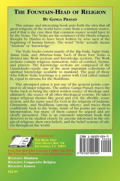 Prasad writes that the Vedas are the oldest written source of theology and, ultimately, the source of all other theological systems. He takes major religious themes--such as good and evil, the afterlife, resurrection and the name used for god in the religions of Judaism, Christianity, Buddhism and others--and traces them back to the Vedas.
