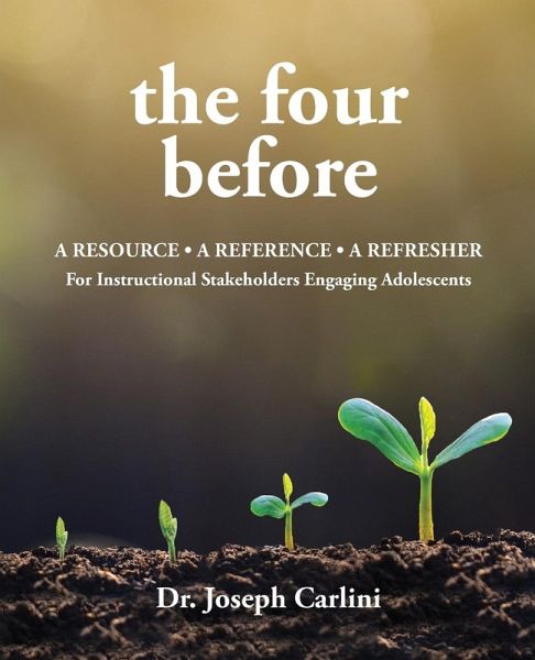 Every teacher, coach, or instructor (Instructional Stakeholder) carries a very serious responsibility to impact, influence, and inspire every young life with purpose, while representing the best version of their unique selves (Instructional Awareness). the four before is a powerful, heartfelt work, intentionally inclusive to all the individuals, organizations, and institutions who passionately devote their hearts, time, and resources toward teaching, coaching, or instructing adolescents on any level and in any capacity. the four before invites and guides you to understand a deeper essence of instruction and to experience it through the way your individual personality style thinks, feels, and acts. Take the journey through the four levels of instructional awareness. Tap into your growth mindset and challenge yourself through each level. Discover an enhanced vision of instruction and an elevated version of yourself (Instructional Awareness). ENGAGE THE FOUR LEVELS OF INSTRUCTIONAL AWARENESS: ¿ Possess Qualified Knowledge ¿ Practice Positive & Mindful Pedagogy ¿ Plant Concentrated Life Skills ¿ Pursue Self-Actualization