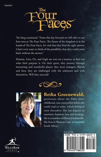 The king continued: "From this day forward we will refer to our four sons as The Four Faces. The future of the kingdom is in the hands of The Four Faces. It's vital that they find the right answer. I don't even want to think of the possibility that they could come back without the answer." Human, Lion, Ox, and Eagle are sent on a journey to find out what their purpose is. On their quest, they journey through interesting and wonderful places; they meet strangers, friends and foes; they are challenged with the unknown and with themselves. Will they succeed?