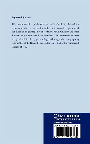 This volume was first published as part of the Cambridge Miscellany series in 1935. It was intended to address the demand for portions of the Bible to be printed 'like an ordinary book'. Chapter and verse divisions in the text have been abandoned, but references to them are provided in the page-headings. Although the paragraphing follows that of the Revised Version, the text is that of the Authorised Version of 1611.