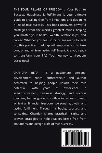 In a world full of distractions, expectations, and endless demands, true freedom often feels just out of reach. We chase success, accumulate wealth, seek validation, and pursue happiness - yet something always feels missing. What if the life you've always dreamed of isn't about working harder, chasing more, or waiting for the "right time"? What if the real secret lies in mastering just four areas of your life - your health, wealth, relationships, and career or purpose? The Four Pillars of Freedom: Your Complete Life Transformation Guide is your ultimate blueprint to creating a life of genuine success, happiness, and fulfillment - not just on the outside, but deep within. This book is designed for those who are ready to break free from mediocrity, silence self-doubt, and finally design the life they deserve. Inside these pages, you will discover how the world's greatest thinkers, entrepreneurs, spiritual leaders, and visionaries mastered their lives by focusing on these Four Pillars. You'll find practical strategies, timeless wisdom, inspiring case studies, and action steps that anyone, regardless of age, background, or current situation, can apply immediately.