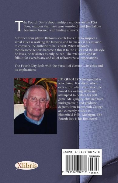 The Fourth Day is about multiple murders on the PGA Tour; murders that have gone unsolved until Jim Balfour becomes obsessed with finding answers. A former Tour player, Balfour's search leads him to suspect a serial killer is walking the fairways and he makes it his mission to convince the authorities he is right. When Balfour's meddlesome actions become a threat to the killer and the lifestyle he loves, he retaliates as only he can. The retaliation and its fallout far exceeds any and all of Balfour's naive expectations. The Fourth Day deals with the pursuit of closure ...its costs and its implications.