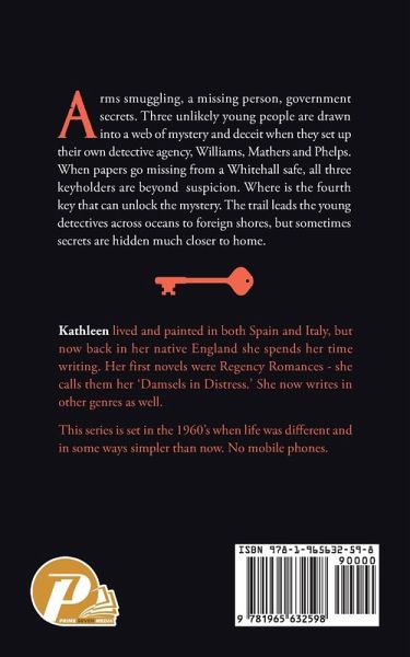 Arms smuggling, a missing person, government secrets. Three unlikely young people are drawn into a web of mystery and deceit when they set up their own detective agency, Williams, Mathers and Phelps. When papers go missing from a Whitehall safe, all three keyholders are beyond suspicion. Where is the fourth key that can unlock the mystery. The trail leads the young detectives across oceans to foreign shores, but sometimes secrets are hidden much closer to home.