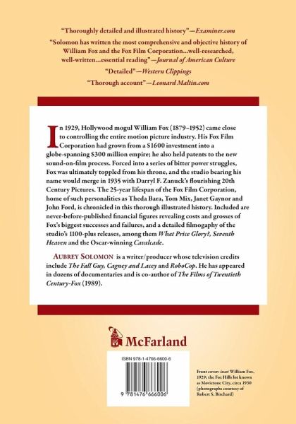 In 1929, Hollywood mogul William Fox (1879-1952) came close to controlling the entire motion picture industry. His Fox Film Corporation had grown from a $1600 investment into a globe-spanning $300 million empire; he also held patents to the new sound-on-film process. Forced into a series of bitter power struggles, Fox was ultimately toppled from his throne, and the studio bearing his name would merge in 1935 with Darryl F. Zanuck's flourishing 20th Century Pictures. The 25-year lifespan of the Fox Film Corporation, home of such personalities as Theda Bara, Tom Mix, Janet Gaynor and John Ford, is chronicled in this thorough illustrated history. Included are never-before-published financial figures revealing costs and grosses of Fox's biggest successes and failures, and a detailed filmogaphy of the studio's 1100-plus releases, among them What Price Glory?, Seventh Heaven and the Oscar-winning Cavalcade.