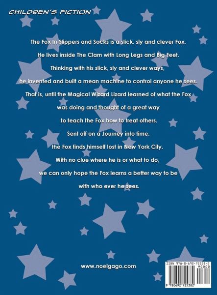 The Fox In Slippers and Socks is a slick, sly and clever Fox. He lives inside The Clam with Long Legs and Big Feet. Thinking with his slick, sly and clever ways, he built a Mean Machine to control all he sees. That is, until the Magical Wizard Lizard learned of what the Fox was doing and thought of a great way to teach the Fox how to treat others. Sent off on a Journey into time, the Fox finds himself in a different kind of jungle than he has ever seen before, New York City. With no clue where he is or what to do, we only hope the Fox finds a better way to be with who ever he sees.
