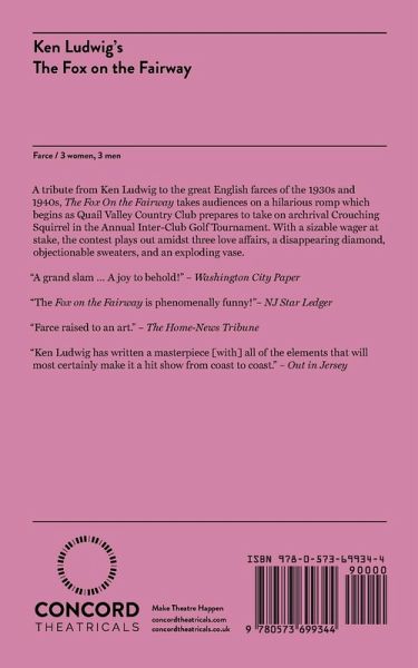 Characters: 3 male, 3 femaleUnit SetA tribute from Ken Ludwig (Lend Me A Tenor, Moon Over Buffalo) to the great English farces of the 1930s and 1940s, The Fox On the Fairway takes audiences on a hilarious romp which pulls the rug out from underneath the stuffy denizens of a private country club. Filled with mistaken identities, slamming doors, and over-the-top romantic shenanigans, it's a furiously paced comedy that recalls the Marx Brothers' classics.A charmingly madcap adventure about love, life, and man's eternal love affair with... golf. "A grand slam...a joy to behold!" Washington City Paper""The Fox on the Fairway" is phenomenally funny!" -NJ Star Ledger"Farce raised to an art."- The Home-News Tribune"A belly laugh marathon! An amazingly ingenious satirical farce." Showbizradio.net"Joyously ridiculous!" TalkinBroadway.com"Ken Ludwig has written a masterpiece (with) all of the elements that will most certainly make it a hit show from coast to coast."-Out in Jersey