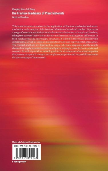 Introduction to the application of the Fracture Mechanics in wood and bamboo.- Mechanical characteristics and stress-strain relationship of wood structure.- Fracture of wood along grain.- Transverse fracture of wood.- Finite element analysis of wood crack tip stress field and prediction of the crack propagation direction.- Fractal features and acoustic emission characteristics of wood fracture.- Mechanical characteristics of bamboo structure and its components.- Interlaminar fracture properties of bamboo.- Modeling on the toughness fracture and energy absorbing mechanism of biomaterial - bamboo (Phyllostachs pubescens).