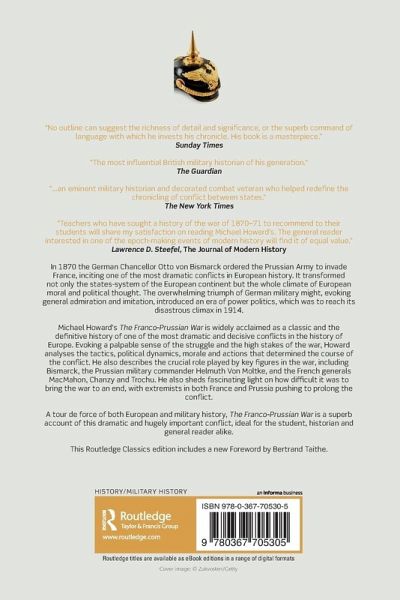 Michael Howard's The Franco-Prussian War is widely acclaimed as a classic and the definitive history of one of the most dramatic and decisive conflicts in the history of Europe. Evoking a palpable sense of the struggle and the high stakes of the war, Howard analyses the tactics, political dynamics, morale and actions that determined the course of the conflict. He also describes the crucial role played by key figures in the war, including Bismarck, the Prussian military commander Helmuth Von Moltke, and the French generals MacMahon, Chanzy and Trochu. He also sheds fascinating light on how difficult it was to bring the war to an end, with extremists in both France and Prussia pushing to prolong the conflict.