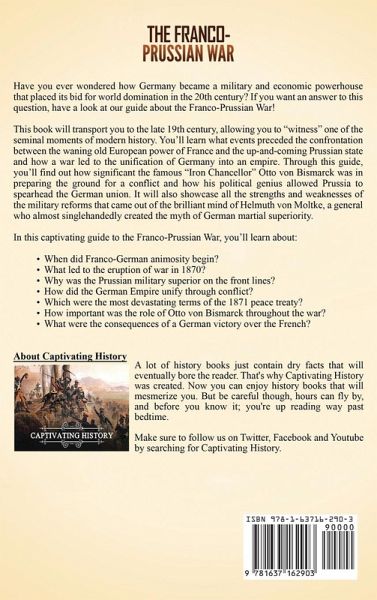 Have you ever wondered how Germany became a military and economic powerhouse that placed its bid for world domination in the 20th century? If you want an answer to this question, have a look at our guide about the Franco-Prussian War! This book will transport you to the late 19th century, allowing you to "witness" one of the seminal moments of modern history. You'll learn what events preceded the confrontation between the waning old European power of France and the up-and-coming Prussian state and how a war led to the unification of Germany into an empire. Through this guide, you'll find out how significant the famous "Iron Chancellor" Otto von Bismarck was in preparing the ground for a conflict and how his political genius allowed Prussia to spearhead the German union. It will also showcase all the strengths and weaknesses of the military reforms that came out of the brilliant mind of Helmuth von Moltke, a general who almost singlehandedly created the myth of German martial superiority. On the other hand, this book will also expose all the faults in French military thought and the blunders committed by their leaders. Through their mistakes, you'll learn how indecisiveness and stubborn traditionalism can lead to disaster, at least on the battlefield. You'll learn how their defeats on the front lines led to one of the most humiliating and harshest peace treaties in recent history, setting the stage for later major conflicts. Finally, you'll read about how a war that was planned and orchestrated by a few leaders on both sides led to avoidable death and destruction, ushering in the ideas of "total war." You'll understand how civilian casualties became acceptable while military deaths were idealized as heroic sacrifices to the homeland. Through thrilling stories of military feats and fiascos, you'll learn about the futility of war, hopefully realizing that violence rarely leads to a finite solution. In this captivating guide to the Franco-Prussian War, you'll learn about:When did Franco-German animosity begin? What led to the eruption of war in 1870? Why was the Prussian military superior on the front lines? What were the biggest flaws of the French generals? Where did the largest French defeat of the 19th century take place? Why did the war only last six months? How did the German Empire unify through conflict? Which were the most devastating terms of the 1871 peace treaty? How important was the role of Otto von Bismarck throughout the war? What were the consequences of a German victory over the French? And much more! Scroll up and click the "add to cart" button to learn more about the Franco-Prussian War!