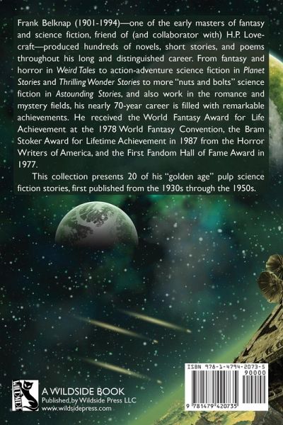 Frank Belknap (1901-1994)-one of the early masters of fantasy and science fiction, friend of (and collaborator with) H.P. Lovecraft-produced hundreds of novels, short stories, and poems throughout his long and distinguished career. From fantasy and horror in Weird Tales to action-adventure science fiction in Planet Stories and Thrilling Wonder Stories to more "nuts and bolts" science fiction in Astounding Stories, and also work in the romance and mystery fields, his nearly 70-year career is filled with remarkable achievements. He received the World Fantasy Award for Life Achievement at the 1978 World Fantasy Convention, the Bram Stoker Award for Lifetime Achievement in 1987 from the Horror Writers of America, and the First Fandom Hall of Fame Award in 1977. This collection presents 20 of his "golden age" pulp science fiction stories, originally published from the 1930s through the 1950s.