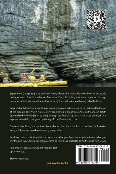 Experience Doug's gripping journey rafting down the iconic Franklin River in the world heritage area of wild southwest Tasmania. From bubbling mountain streams, through powerful rapids, to inspirational chasms rising from still waters with magical reflections. Entwined with this ride, share Doug's experiences and adventures, as he matches the tempo of the Franklin River with his life story. From low points of jails and courthouses in North Queensland to the highs of soaring through the French Alps in a hang glider, to near-fatal experiences whilst diving and yachting off the Queensland coast. Discover how Doug's adventures have shaped his character, from a creative, thrill-seeker living on the edge to a deep-thinking pragmatist. Be drawn into thinking about your own life, what you have accomplished, and what you want to achieve. Some answers may come to light as you paddle down the river with Doug. Remember - procrastination may lead to lost opportunities. Enjoy the journey.
