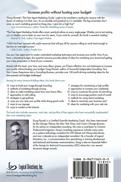 This book will help any free agent, independent consultant, contractor, or freelancer, master many overlooked marketing techniques and increase profits. Even if you have a shoestring budget, this essential resource provides plenty of ideas for marketing your brand and getting your value proposition in front of your customers. The book includes over 180 resources and more than 100 profit-driving marketing ideas for the time-pressed and budget challenged. Celebrity blurbs include Jay Conrad Levinson (author of "Guerrilla Marketing" series of books), Dan Pink (author of "Free Agent Nation"), Seth Godin (author of "Purple Cow"), Alan Weiss (author of "Million Dollar Consulting"), and others.