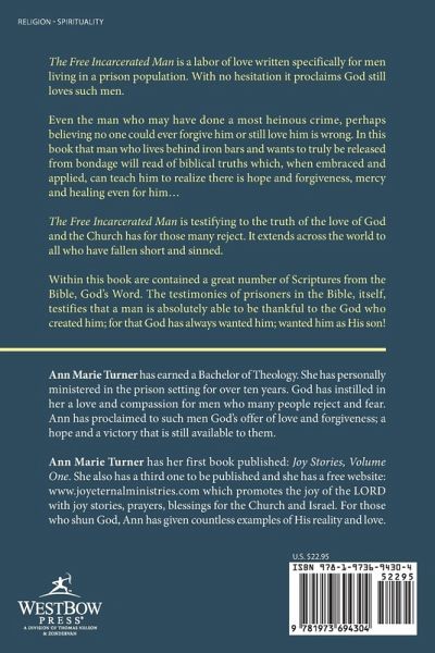 The Free Incarcerated Man is a labor of love written specifically for men living in a prison population. With no hesitation it proclaims God still loves such men. Even the man who may have done a most heinous crime, perhaps believing no one could ever forgive him or still love him is wrong. In this book that man who lives behind iron bars and wants to truly be released from bondage will read of biblical truths which, when embraced and applied, can teach him to realize there is hope and forgiveness, mercy and healing even for him... The Free Incarcerated Man is testifying to the truth of the love of God and the Church has for those many reject. It extends across the world to all who have fallen short and sinned. Within this book are contained a great number of Scriptures from the Bible, God's Word. The testimonies of prisoners in the Bible, itself, testifies that a man is absolutely able to be thankful to the God who created him; for that God has always wanted him; wanted him as His son!