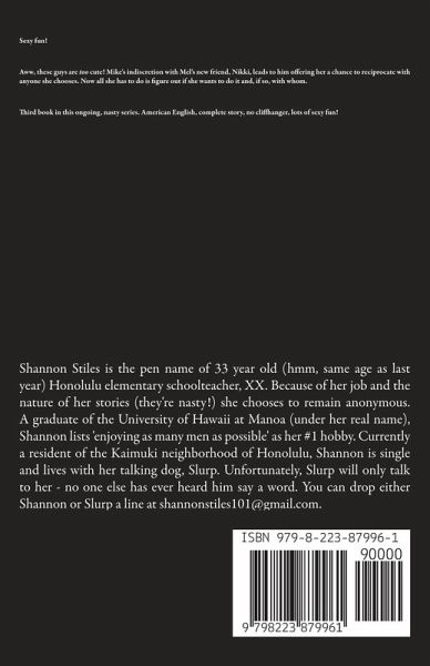 Sexy fun! Aww, these guys are too cute! Mike's indiscretion with Mel's new friend, Nikki, leads to him offering her a chance to reciprocate with anyone she chooses. Now all she has to do is figure out if she wants to do it and, if so, with whom. Third book in this ongoing, nasty series. American English, complete story, no cliffhanger, lots of sexy fun!