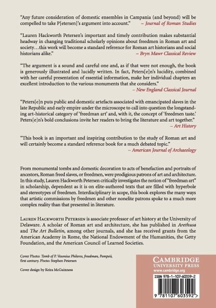 From monumental tombs and domestic decoration, to acts of benefaction and portraits of ancestors, Roman freed slaves, or freedmen, were prodigious patrons of art and architecture. Traditionally, however, the history of Roman art has been told primarily through the monumental remains of the emperors and ancient writers who worked in their circles. In this study, Lauren Petersen critically investigates the notion of 'freedman art' in scholarship, dependent as it is on elite-authored texts that are filled with hyperbole and stereotypes of freedmen, such as the memorable fictional character Trimalchio, a boorish ex-slave in Petronius' Satyricon. She emphasizes integrated visual ensembles within defined historical and social contexts and aims to show how material culture can reflect preoccupations that were prevalent throughout Roman society. Interdisciplinary in scope, this book explores the many ways that monuments and artistic commissions by freedmen spoke to a much more complex reality than that presented in literature.