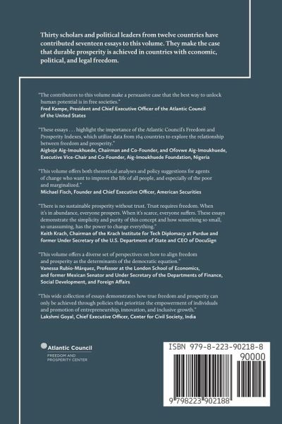 The Atlantic Council Freedom and Prosperity Center has assembled this collection of essays exploring the relationship between freedom and prosperity. Thirty scholars and political leaders from twelve countries have contributed seventeen essays, together making the case that durable prosperity is achieved in countries with economic, political, and legal freedom. The Freedom and Prosperity Center aims to increase the well-being of people everywhere and especially that of the poor and marginalized in developing countries through unbiased, data-based research on the relationship between prosperity and economic, political, and legal freedoms, in support of sound policy choices. The Center analyzes some of the defining questions of our time and of all time. Do countries need freedom to achieve prosperity? Do democracies or autocracies have the better answers to the aspirations of the peoples of the world? What about countries that are not electoral democracies in the Western sense, but have high levels of economic and legal freedoms and leaders who appear to enjoy a high level of legitimacy among their citizens? Central to answering these questions are the Freedom and Prosperity Indexes. The indexes measure the freedom and prosperity of nearly every country in the world. This collection of essays is based, in large part, on these Indexes - the unique insights that emerge from their close study, and the questions they raise for decision makers worldwide.