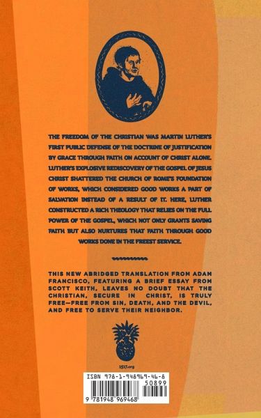 The Freedom of the Christian was Martin Luther's first public defense of the doctrine of justification by grace through faith on account of Christ alone. Luther's explosive rediscovery of the Gospel of Jesus Christ shattered the Church of Rome's foundation of works, which considered good works a part of salvation instead of a result of it. Here, Luther constructed a rich theology that relies on the full power of the Gospel, which not only grants saving faith but also nurtures that faith through good works done in the freest service. This new abridged translation from Adam Francisco, featuring a brief essay from Scott Keith, leaves no doubt that the Christian, secure in Christ, is truly free-free from sin, death, and the devil, and free to serve their neighbor.