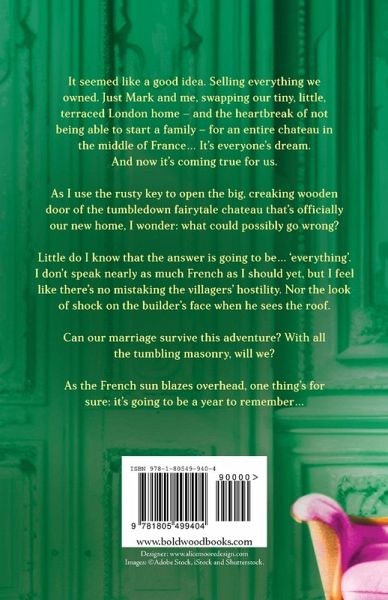Click: buy... a French chateau. Condition: 'may require improvement'... It seemed like a good idea. Selling everything we own. Just Mark and I, swapping our tiny little terraced London home - and the heartbreak of not being able to start a family - for an entire chateau in the middle of France... This has always been our dream. And now it's coming true. As I use the rusty key to open the big, creaking wooden door of the tumbledown fairytale chateau that's officially our new home, I wonder: what could possibly go wrong? Turns out my grasp of the language isn't brilliant - and I've realised too late that I should really have got fluent before emigrating. But it turns out that the answer is 'le tout'. In other words, 'everything' than can go wrong, will... Will our marriage survive this adventure? With all the tumbling masonry, will we? As the French sun blazes overhead, one thing's for sure: it's going to be a year to remember...
