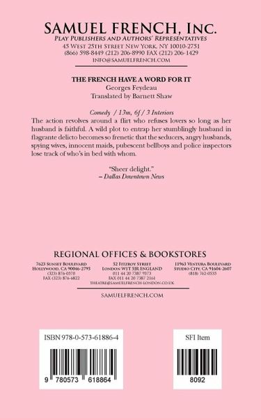 Little Theatre Comedy Georges Feydeau, Translated by Barnett Shaw Characters: 13 male, 6 female 3 interior scenes The action revolves around a flirt who refuses lovers so long as her husband is faithful. A wild plot to entrap her stumblingly husband in flagrante delicto becomes so frenetic that the seducers, angry husbands, spying wives, innocent maids, pubescent bellboys and police inspectors lose track of who's in bed with whom. "Sheer delight." Dallas Downtown News.