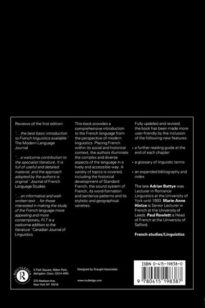 This book provides a comprehensive introduction to the French language from the perspective of modern linguistics. Placing French within its social and historical context, the authors highlight the complex, diverse aspects of the language in a lively and accessible way. A variety of topics is covered, including the distribution of French in the world, the historical development of standard French, the sound system of French, its sentence patterns, and its stylistic and geographical variations. Fully updated and revised, this new edition places a greater emphasis on sociolinguistics. To make the book more user-friendly, the following new features have been added: * a further reading guide at the end of each chapter * a glossary of linguistic terms * an expanded bibliography and index.