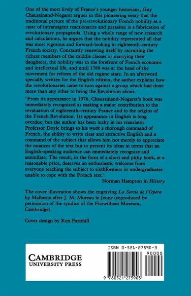One of the most lively of France's younger historians, Guy Chaussinand-Nogaret argues in this pioneering essay that the traditional picture of the pre-revolutionary French nobility as a caste of intransigent reactionaries and parasites is a fabrication of revolutionary propaganda. Using a whole range of new research and calculations, he argues that the nobility represented all that was most vigorous and forward-looking in eighteenth-century French society. Constantly renewing itself by recruiting the richest members of the middle classes or marrying their daughters, the nobility was in the forefront of French economic and intellectual life, and until 1789 was at the head of the movement for reform of the old regime state. In an afterword specially written for the English edition, the author explains how the revolutionaries came to turn against a group that had done more than any other to bring about the Revolution.