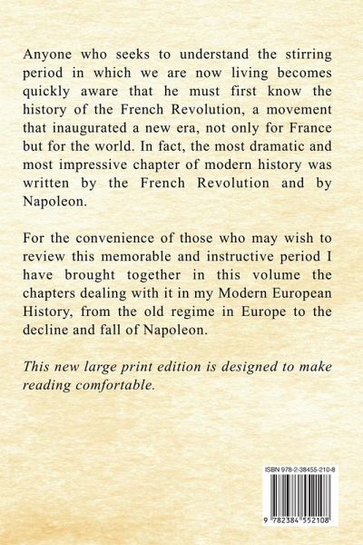 Anyone who seeks to understand the stirring period in which we are now living becomes quickly aware that he must first know the history of the French Revolution, a movement that inaugurated a new era, not only for France but for the world. In fact, the most dramatic and most impressive chapter of modern history was written by the French Revolution and by Napoleon. For the convenience of those who may wish to review this memorable and instructive period I have brought together in this volume the chapters dealing with it in my Modern European History, from the old regime in Europe to the decline and fall of Napoleon. This new large print edition is designed to make reading comfortable.