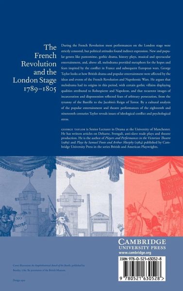 During the French Revolution most performances on the London stage were strictly censored, but political attitudes found indirect expression. New and popular genres like pantomime, gothic drama, history plays, musical and spectacular entertainment, and, above all, melodrama provided metaphors for the hopes and fears inspired by the conflict in France and subsequent European wars. This 2001 book looks at how British drama and popular entertainment were affected by the ideas and events of the French Revolution and Napoleonic Wars. He argues that melodrama had its origins in this period, with certain gothic villains displaying qualities attributed to Robespierre and Napoleon, and that recurrent images of incarceration and dispossession reflected fears of arbitrary persecution, from the tyranny of the Bastille to the Jacobin's Reign of Terror. By a cultural analysis of the popular entertainment and theatre performances of the eighteenth and nineteenth centuries Taylor reveals issues of ideological conflict and psychological stress.