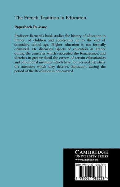 Professor Barnard's book discusses aspects of education in France during the centuries which succeeded the Renaissance