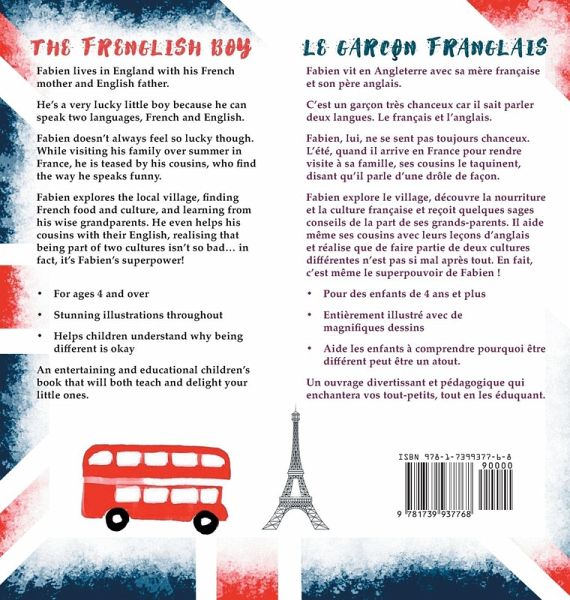 Fabien lives in England with his French mother and English father. He's a very lucky little boy because he can speak two languages, French and English. Fabien doesn't always feel so lucky though. While visiting his family over summer in France, he is teased by his cousins, who find the way he speaks funny. Fabien explores the local village, finding French food and culture, and learning from his wise grandparents. He even helps his cousins with their English, realising that being part of two cultures isn't so bad... in fact, it's Fabien's superpower! For ages 4 and over Stunning illustrations throughout Helps children understand why being different is okay An entertaining and educational children's book that will both teach and delight your little ones. Both written in English and French