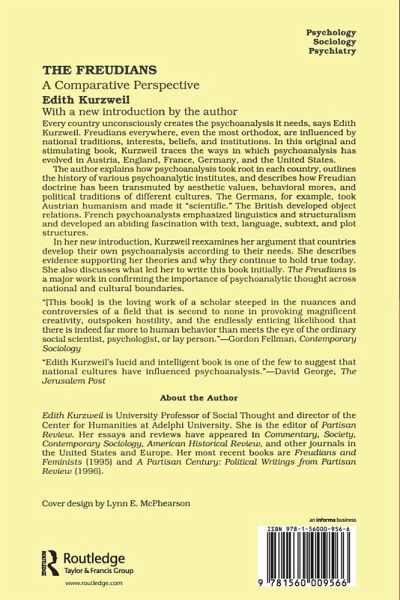 Every country unconsciously creates the psychoanalysis it needs, says Edith Kurzweil. Freudians everywhere, even the most orthodox, are influenced by national traditions, interests, beliefs, and institutions. In this original and stimulating book, Kurzweil traces the ways in which psychoanalysis has evolved in Austria, England, France, Germany, and the United States. The author explains how psychoanalysis took root in each country, outlines the history of various psychoanalytic institutes, and describes how Freudian doctrine has been transmuted by aesthetic values, behavioral mores, and political traditions of different cultures. The Germans, for example, took Austrian humanism and made it "scientific." The British developed object relations. French psychoanalysts emphasized linguistics and structuralism and developed an abiding fascination with text, language, subtext, and plot structures. In her new introduction, Kurzweil reexamines her argument that countries develop their own psychoanalysis according to their needs. She describes evidence supporting her theories and why they continue to hold true today. She also discusses what led her to write this book initially. The Freudians is a major work in confirming the importance of psychoanalytic thought across national and cultural boundaries.