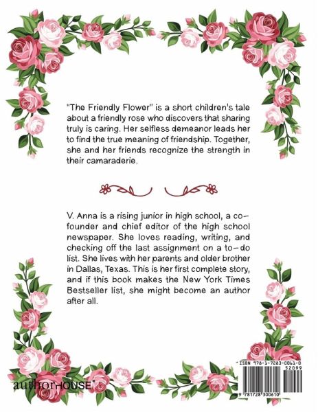 "The Friendly Flower" is a short children's tale about a friendly rose who discovers that sharing truly is caring. Her selfless demeanor leads her to find the true meaning of friendship. Together, she and her friends recognize the strength in their camaraderie.