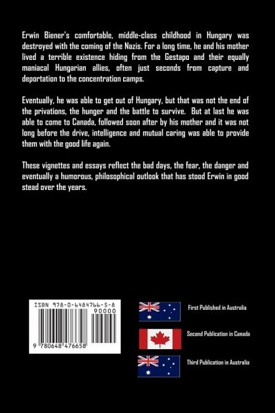 Erwin Biener had a comfortable middle-class life as a child in Hungary until the Nazis arrived. He and his mother had to go through terrible times, first under the Nazis and then under the Soviets before they were able to escape and reach Canada. This book relates some of the scenes and horrors he experienced and the difficulties he and his mother faced when they finally made it to Canada.
