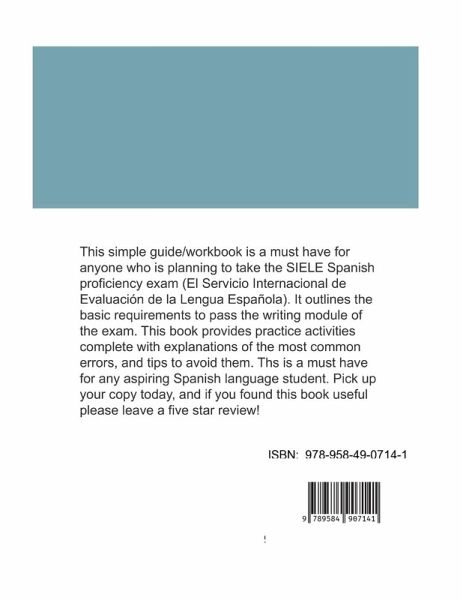 This simple second edition guide/workbook is a must have for anyone who is planning to take the SIELE Spanish proficiency exam (El Servicio Internacional de Evaluación de la Lengua Española). It outlines the basic requirements to pass the writing module of the exam. This book provides practice activities complete with explanations of the most common errors, and tips to avoid them. Ths is a must have for any aspiring Spanish language student. Pick up your copy today, and if you found this book useful please leave a five star review!