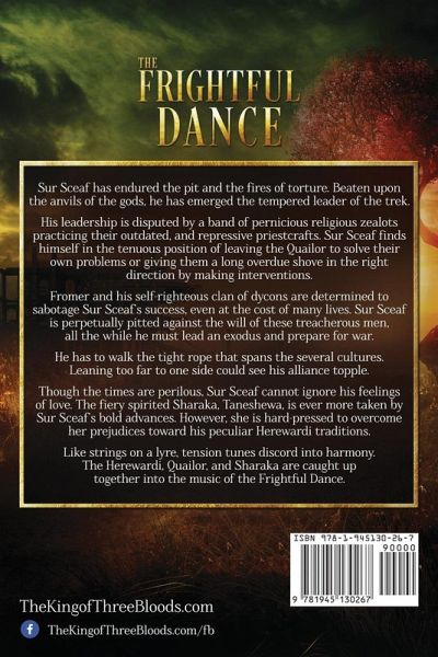 Sur Sceaf has endured the pit and the fires of torture. Beaten upon the anvils of the gods, he has emerged the tempered leader of the trek. His leadership is disputed by a band of pernicious religious zealots practicing their outdated and repressive priestcrafts. Sur Sceaf finds himself in the tenuous position of leaving the Quailor to solve their own problems or giving them a long overdue shove in the right direction by making interventions. Fromer and his self-righteous clan of dycons are determined to sabotage Sur Sceaf’s success, even at the cost of many lives. Sur Sceaf is perpetually pitted against the will of these treacherous men, all the while he must lead an exodus and prepare for war. He has to walk the tight rope that spans the several cultures. Leaning too far to one side could see his alliance topple. Though the times are perilous, Sur Sceaf cannot ignore his feelings of love. The fiery spirited Sharaka, Taneshewa, is ever more taken by Sur Sceaf’s bold advances. However, she is hard-pressed to overcome her prejudices toward his peculiar Herewardi traditions. Like strings on a lyre, tension tunes discord into harmony. The Herewardi, Quailor, and Sharaka are caught up together into the music of the Frightful Dance.