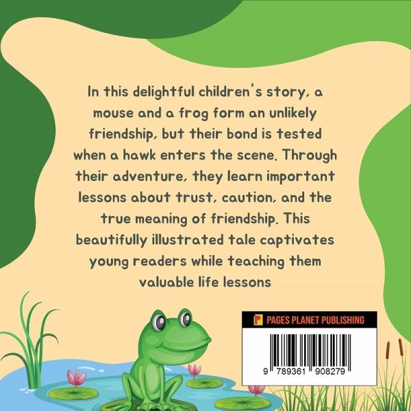 In this delightful children's story, a mouse and a frog form an unlikely friendship, but their bond is tested when a hawk enters the scene. Through their adventure, they learn important lessons about trust, caution, and the true meaning of friendship. This beautifully illustrated tale captivates young readers while teaching them valuable life lessons.
